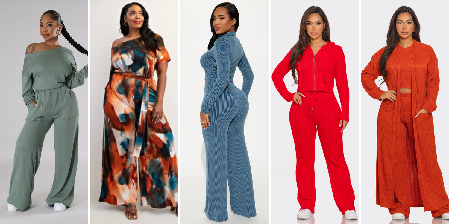 I am a woman that loves a good set and this is a must have. I wear between a size 1x and 2x and I am wearing a size large in the picture comfortably. I have this set in multiple colors. Buy them all. It can be dressed up or dressed down. Perfect for church then brunch!